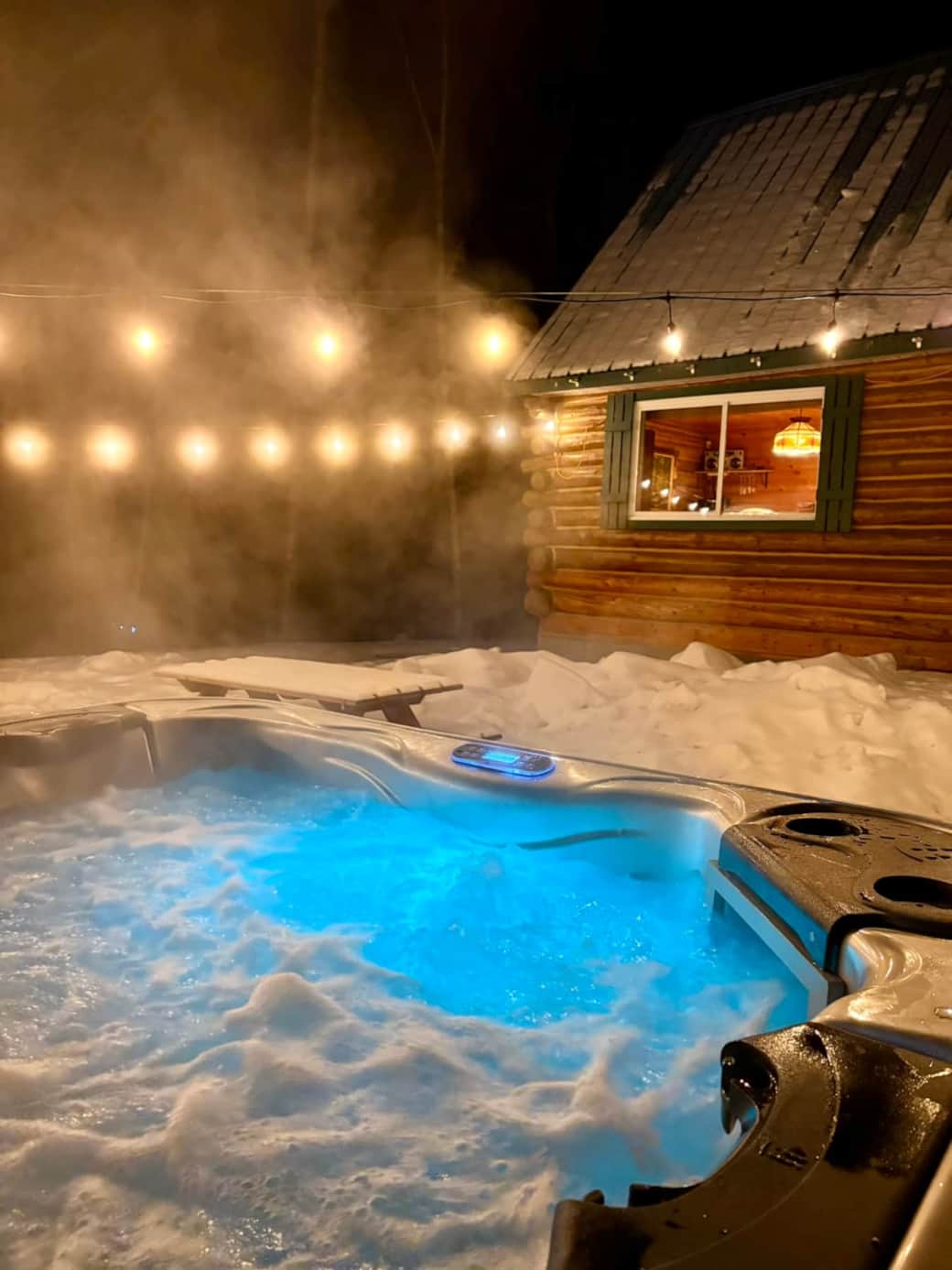 Le chalet peut accueillir jusqu’à 6 personnes et dispose d’un spa extérieur, d’un foyer intérieur avec bois fourni, du Wi-Fi et d’un accès direct aux sentiers de VTT et motoneige. Les chiens sont acceptés, ce qui en fait un lieu idéal pour les séjours en pleine nature sans compromis.